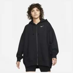 Der Nike Sportswear Essentials Fleece-Kapuzenpullover mit durchgehendem Reißverschluss bietet einen entspannten, selbstbewussten Stil, der zuverlässig wärmt. Das etwas längere Design sorgt für zusätzliche Bedeckung und ist damit die perfekte Ergänzung zu deinen Lieblingsleggings. Die übergroße und übertriebene Passform an Rumpf und Ärmeln wird durch überschnittene Schultern und geräumige Ärmel akzentuiert und sorgt für einen ikonischen Look und Komfort. Die Rückseite dieses schweren Fleece ist gebürstet und sorgt so für ein weiches Gefühl und einen hochwertigen Look auf der Innenseite. Der durchgehende Reißverschluss sorgt für eine bequeme Passform, die sich leicht übereinanderliegen lässt und für den Alltag geeignet ist. Übergroße Passform. Körper: 80% Baumwolle / 20% Polyester. Kapuzenfutter: 80% Baumwolle / 20% Polyester.