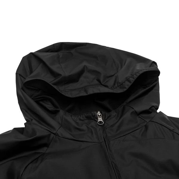 - Die Kapuze mit Schirm schützt dich vor Regen.